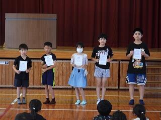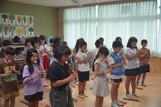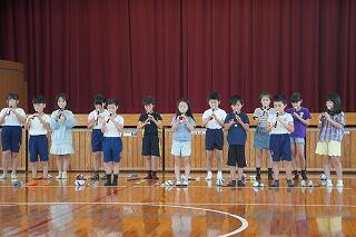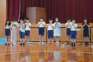 6年生は、「翼をください」の合唱と「Bling-Bang-Bang-Born」の合奏(リコーダー・鍵盤ハーモニカ)をしました。「Bling-Bang-Bang-Born」は5月の運動会で1・2年生が発表したダンスの曲です。6年生のパワー溢れる演奏と相まって、体が思わず動き出しそうになりました。
