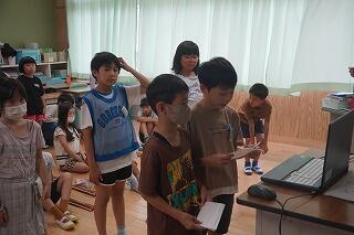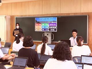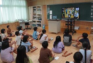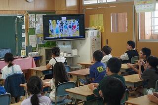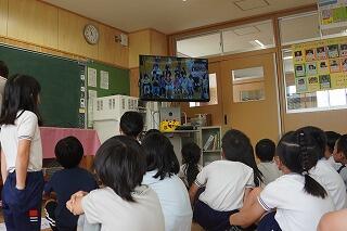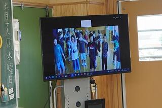 今回のオンライン交流は、第1回目ということで、お互いの学校紹介として学校〇×クイズを行ったり、各学校ごとに、歌を歌ったり、ダンスをしたり、合奏をしたりして交流を深めました。
