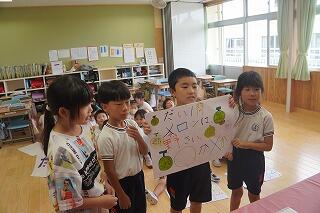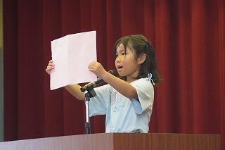 今日の朝の時間に、本年度最初の「発表集会」を行いました。3年生と6年生が発表しました。