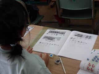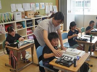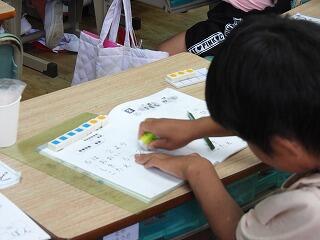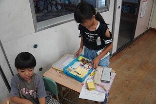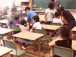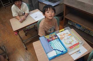 今日の学習は「机の引き出しの中の片付け」に焦点をあてて、子どもたちは片付けの方法を考えたり、実際に片付けたりしながら学習していました。学校でも家庭で同じですが、声かけだけではなく、具体的にその方法を教え、実際にやらせてみることが必要ですね。