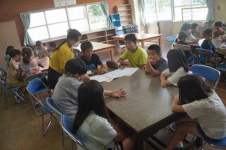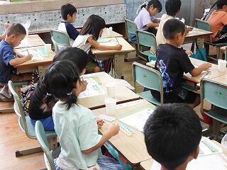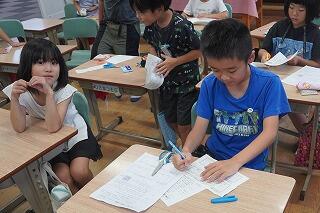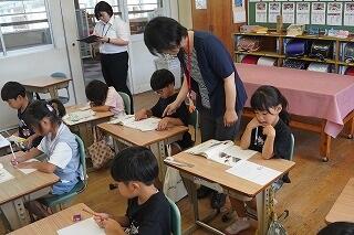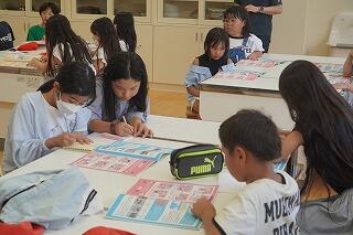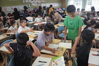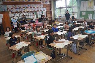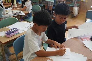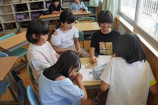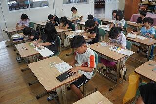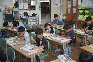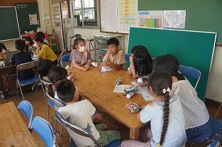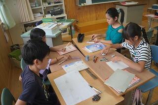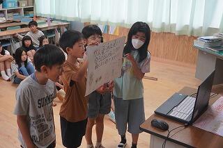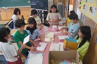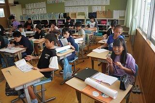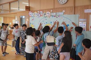 本年度は6月初めには、事前交流としての動画や掲示物等による自己紹介を行いました。今後は、9月に5、6年生が直接交流を行います。また、都きり祭や乙房ふれ愛祭りの時に互いの作品を掲示したり、年賀状交換を行ったりする予定です。