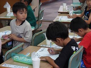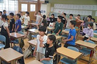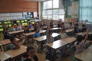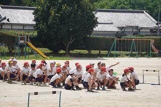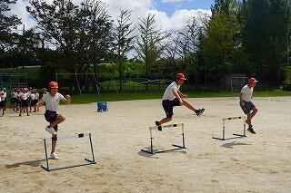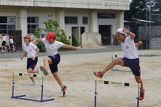 50m走やハードル走の練習を行いました。暑さ指数が「厳重警戒」で、休憩と水分補給の時間を多めに入れながらの授業でした。久しぶりの運動場での体育の授業に、「暑い、暑い」と子どもたち。しばらくは、残暑が厳しい状況が続くので、熱中症対策をしっかり行いながら練習に取り組ませていきます。