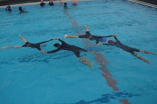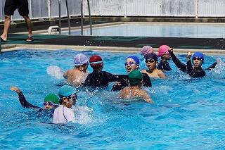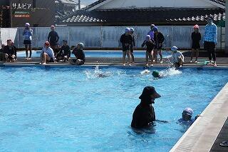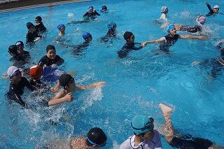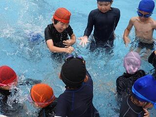 こちらも最初に水中じゃんけん。おやおや、水上じゃんけんになってしまっているところも・・・。まあ、初めはこんな感じです。