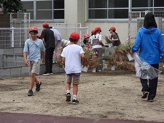 昨年度育てていた花が枯れたので、片付けています。力仕事で大変なはずですが、進んで作業に取り組む働き者ばかりです。次は、どんな花を育ててくれるのでしょうか。