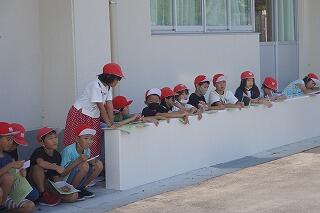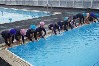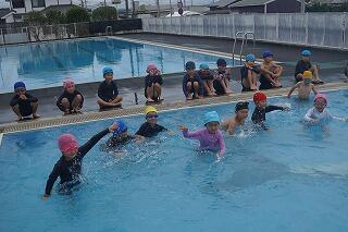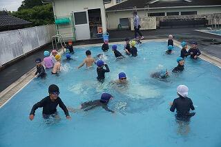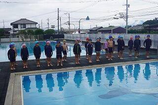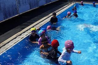 小プールに入る前に、みんなの安全を願って、プールに「おねがいします!」と挨拶をしました。