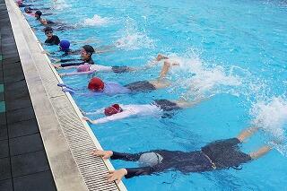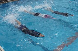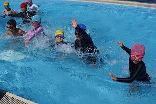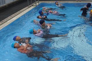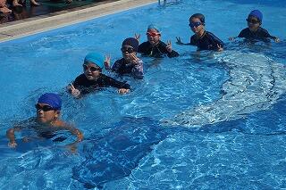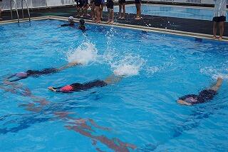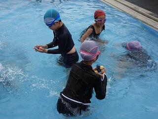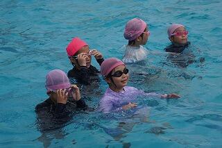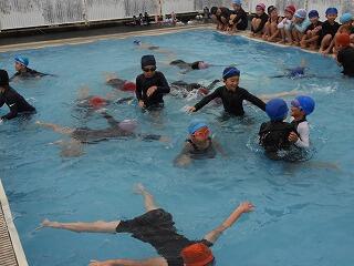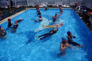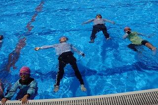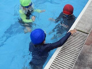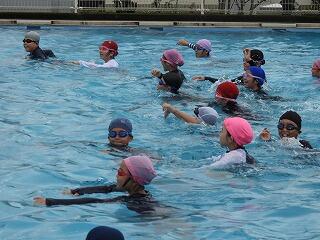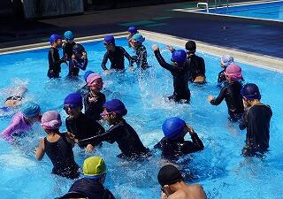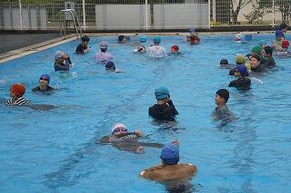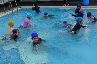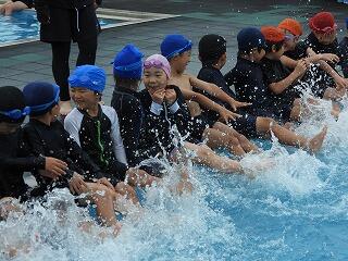 もぐったり、歩いたり、浮いたりして体を水に慣らしました。これまで学習してきた「けのび」や「クロール」もやってみました。子どもたちは実に楽しそうで、「気持ちよかった!」と満足の表情でした。