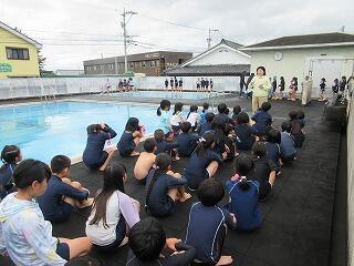 21日(金)は5・6年生のプール開きでした。昨日20日(木)は雨が強くて21日(金)に延期になりました。