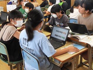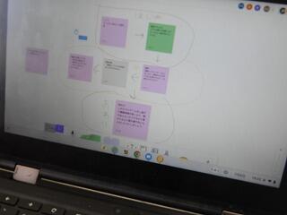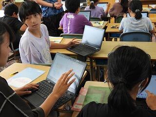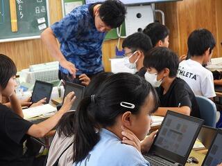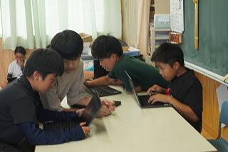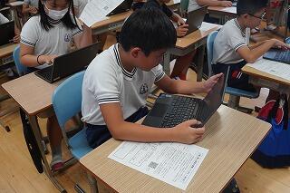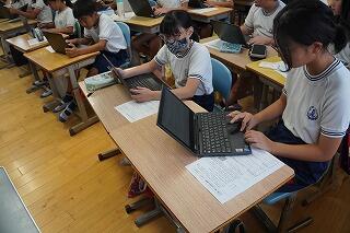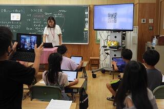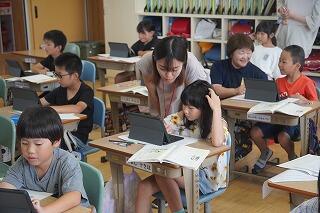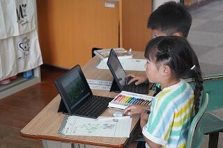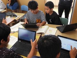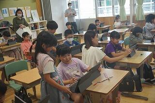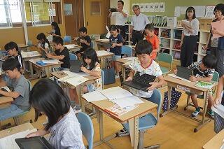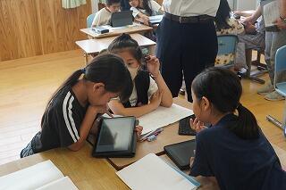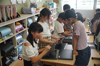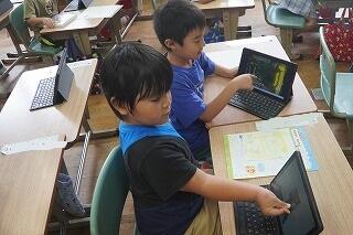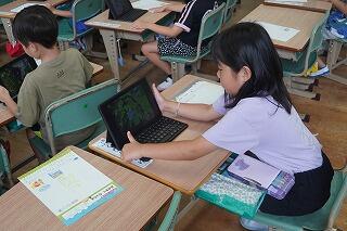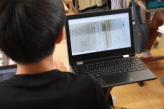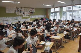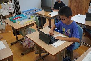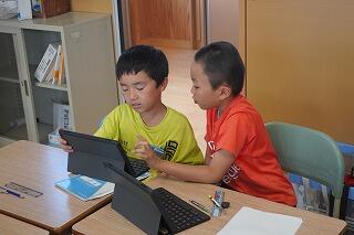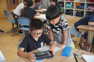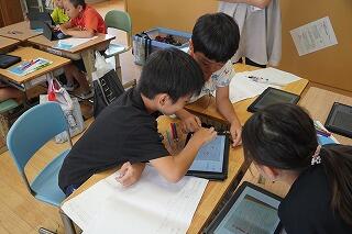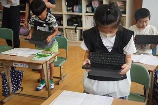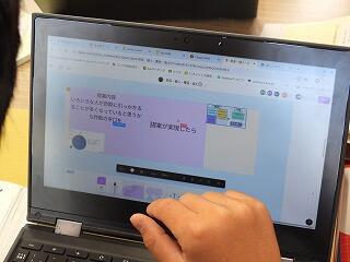 現在、タブレットPC(1人1台端末)を使っての学習も段階的に取り入れながら学習を進めています。