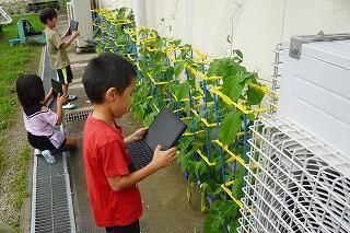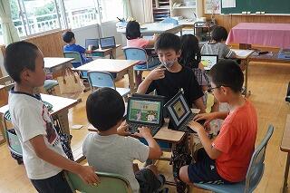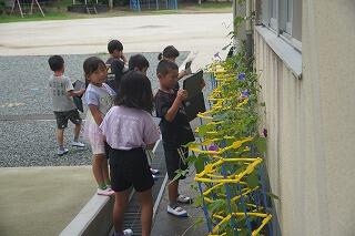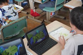 キュビナ(AIドリル)でドリル学習を行ったり、学校探検やアサガオの様子を写真に撮ったりと、いろいろなことにチャレンジしています。子どもたちは、瞬く間に使えるようになります。