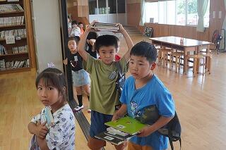 乙房小のみんなは、読書が大好き。図書室の本を大切に使わないと、みんなが困ります。どんなことに気を付ければよいか、低学年でも分かるように絵と言葉で具体的に伝えようと、みんなで相談していました。