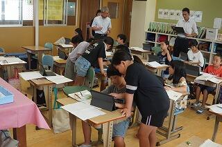 その後、教室で動画「地震について学ぼう」消防庁(中・高学年)や「じしんがおきたら」NHK for shool(低学年)を視聴して、家や登下校中、海等で地震が起きた際の身を守る方法についても学びました。