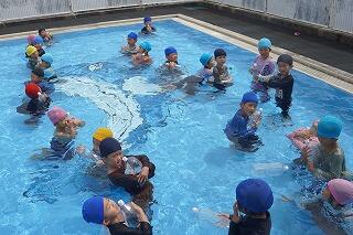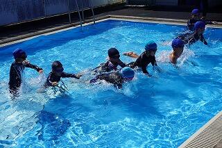 その後、みんなで流れるプールを作ったり、宝探しをしたりして初めてのプールを楽しんでいました。「次のプールも楽しみ!!」と、プール学習をとても楽しみにしている様子でした。