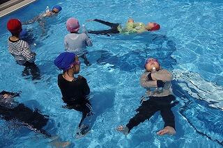 水慣れした子は、だるま浮きや十字浮きでぷかぷか。気持ちいいなあ。