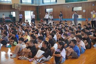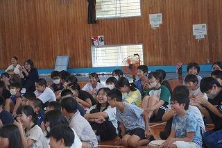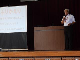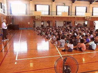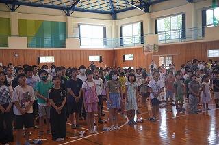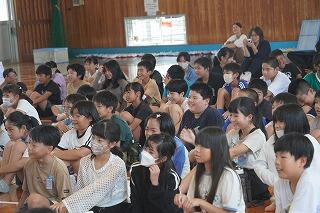 校長先生や係の先生からは、8月8日の日向灘沖を震源とする地震(都城市 震度5強)、「南海トラフ地震臨時情報(巨大地震注意)」の発表、31日(土)の地震(都城市 震度2)と、地震に注意が必要な状況が続いていること。日頃から避難方法を学び、「自分のいのちは自分で守る」という気持ちをもっておくことが大切であると話がありました。
