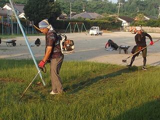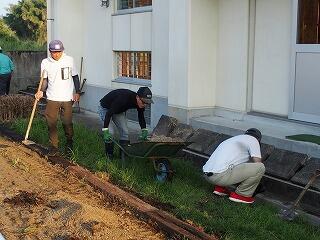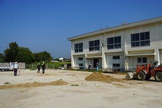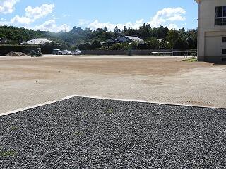運動場の土が流れたり、水はけが悪かったりして困っていたところ、夏季休業中に乙房地区の永倉建設(永倉喜一郎会長)さんが御厚意で土が流れないよう運動場の端に枕木を並べたり、運動場に土を入れたりしてくださいました。