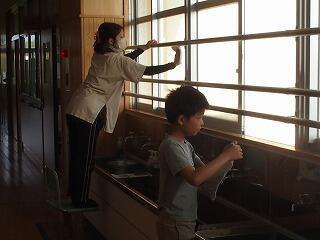 乙房小ではそうじ「だいすき」を合い言葉〔(だ)だまって、(い)いっしょうけんめい、(す)すみずみまで、(き)きちんとあとしまつ〕に清掃活動に取り組んでいます。