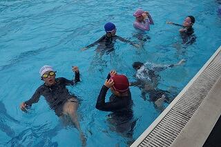 水中じゃんけんをして、プールを端から端まで歩いて、勢いあまってちょっと泳いだりして・・・。