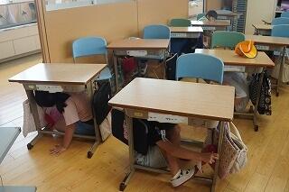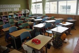 本年2月に新校舎へ引っ越して、避難経路の確認はこれまで3回行っていますが、地震対応の全校での避難訓練は今回が初めてでした。みんな真剣に取り組むことができました。事前に担任の先生から指導があった「おはしも」をしっかりと守って避難できました。