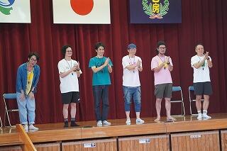 今日9月5日(水)は鑑賞教室がありました。本年度は『ロクディム(6-dim+)』の皆さんに乙房小にきていただきました。ロクディムさんは、日本各地を巡り講演を行っているパフォーマンス集団です。