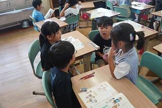 「よくないと思うことを見たら、どうすればいいでしょう」というめあてで、考えたり、話し合ったりしていました。教材の中の子どもと同じように葛藤しながら、真剣に考えたり、友達と話し合ったり、発表したりしている子どもたちの姿がてとてもすばらしかったです。
