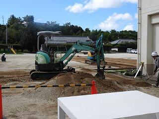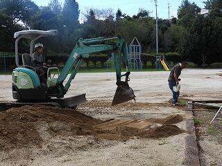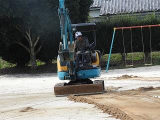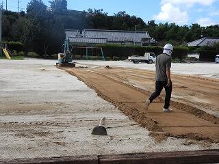 先週は、本校の保護者を含む小野原建設(平田靖孝社長)さんが、重機等を使って、運動場の水はけをよくするためサンドマットを埋設したり、先日の台風で枕木や土が流れたところに再度土を入れたりして整備してくださいました。今回も御厚意による作業で、とても暑い中朝から作業してくださり、15時前には運動場が見違えるほどきれいになりました。