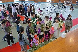 代表の子どもたちからは、お世話になったことへのお礼の言葉と花束が贈られました。退職、転出される先生方からは、乙房小学校での思い出と感謝、子どもたちへのエールが贈られました。