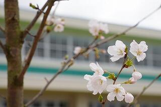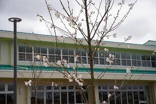 今日、3月26日(火)は令和5年度の修了式でした。昨晩は嵐でしたが、修了式が始まる頃には、少しずつ晴れ間も見えてきました。新校舎前の桜も開花しました。とてもかわいらしい花が咲いています。