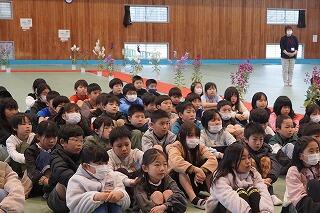 3名の先生方から春休みの過ごし方について話がありました。しっかり復習をすること、交通事故や水の事故には十分気を付けて、自分の命は自分で守ること、生活のリズムを整え、規則正しい生活をすることなど、子どもたちは、真剣に話を聞いていました。