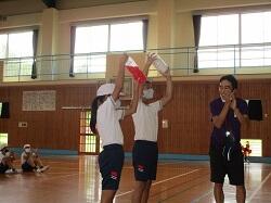 スローガンの発表の後、最近はやりの「魔法の水」(振ると色が変わります。)を使っての赤白決定です。