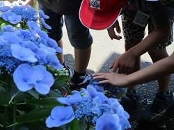 あじさいの花がきれいな季節です。2年生が観察をしていました。