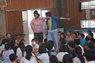 ワークショップ(4~6年生のみ)で楽しく学んだり、即興演劇(全校)を見たりして、演劇の魅力や表現することの楽しさや素晴らしさをいっぱい感じることができました。子どもたちも、とても盛り上がり、たくさん笑いました。