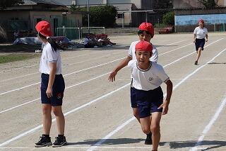本校の6年生も陸上運動教室に向けて、練習に取り組んでいますが、校舎新増改築工事のため、運動場が狭く、直線で50mがぎりぎり取れる広さしかありません。