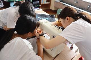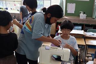 5年生は家庭科でナップザックを作り、10月12日(水)・13日(木)の宿泊学習で使う予定です。
