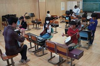 本校には学校のクラブ部活動にも伝承芸能クラブがあり、そこで三味線や太鼓、唄の練習をしています。それに引き続き放課後、希望者を募って、伝承研究会を行っています。この伝承活動を支えるために、毎回、三味線の先生方が講師に来てくださっています。本当にありがたいことです。