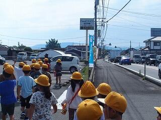 今日は2年生が生活科の時間に学校周辺の「まちたんけん」に行きました。「何があるかな?」「どんなところかな?」と、郵便局、駐在所、助産院、歯科医院、コンビニ、乙房神社、こども園、・・・とたんけんして回りました。