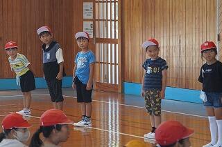 今日は1年生の自己紹介にはじまり、「だるまさんがころんだ」「ジャンケン列車」と全校みんなで楽しく活動しました。