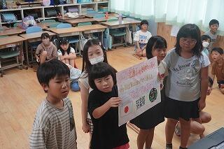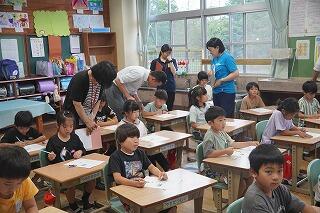 本年度は6月初めには、事前交流としての動画や掲示物等による自己紹介を行いました。今後は、9月に5、6年生が直接交流を行います。また、都きり祭や乙房ふれ愛祭りの時に互いの作品を掲示したり、年賀状交換を行ったりする予定です。