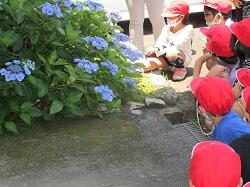 あじさいの花がきれいな季節です。2年生が観察をしていました。