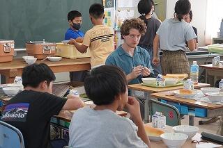 それぞれの国の文化や生活、あいさつ、ジャンケンなどの簡単なゲームについて分かりやすく紹介していただきました。一緒にゲームをしたり、〇×クイズに答えたりと、子どもたちはとても楽しく学習していました。また、給食も2、4、6年に1名ずつ入っていただいて、一緒に楽しく食事をすることができました。