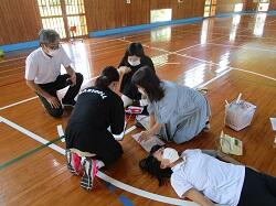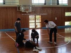 「緊急時の対応」の研修では、「体育館で体育の授業中に急に子どもが倒れた」場合を想定して、各自の役割や分担の確認をしました。その後、改善点について熱心な議論が交わされました。