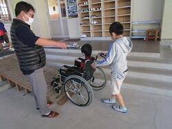 3年生が「しょうがいがある人たちも、自分たちも、ともに安全に、楽しく生活できるための工夫を知り、これから自分たちができることについて考えよう。」をめあてに、社会福祉協議会、乙房地区の民生委員の方々のご協力をいただき車いす体験、アイマスク体験をしました。