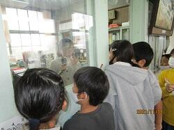 3年生が社会科の学習で、校火災報知器や非常ベルなどの消防施設をさがして、校内を探検していました。事務室の「防災無線」に気が付いたようです。事務の先生から説明を聞いていました。