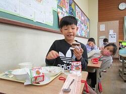 初めての1年生、学校でケーキが食べられるなんて!