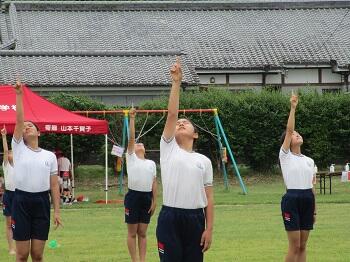 団長2人が優勝旗返還、授与の練習をしていました。私(校長)も緊張してきました。