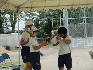 ※ 本校のマスク着用について・・運動時は、十分な身体的距離を保ち、大声や会話を控えながらマスクを外して活動します。準備・片付けや集合時、並んで移動する時等、十分な身体的距離が取れない場合、近距離での会話の必要がある時はマスクを着用するように指導します。熱中症対策を十分に行い、健康観察を徹底していきます。