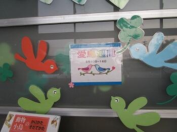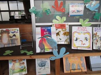 5月の愛鳥週間に合わせて「鳥」に関する本がディスプレイされています。