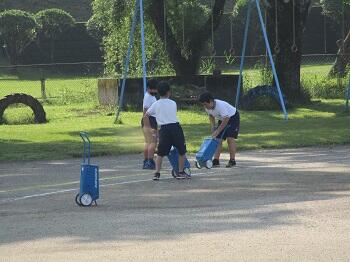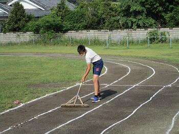 体育委員会とボランティアで朝早くから、運動場整備をしてくれています。