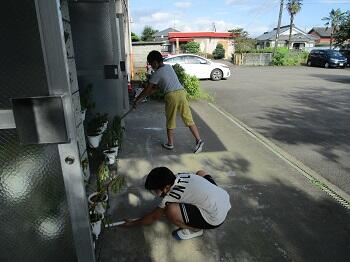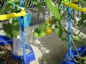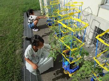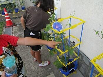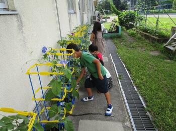 1年生と2年生は、生活科で育てている「あさがお」と「ミニトマト」の水やりもしています。