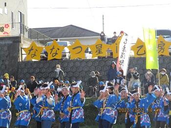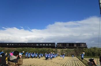 法被姿でななつ星を元気にお出迎えした後、集まってくださった地域の方々に
