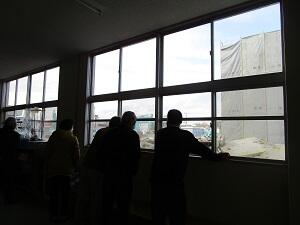 授業や仮設校舎の様子、旧校舎の解体工事等も見ていただきました。
